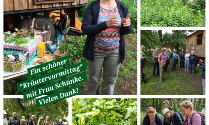 Ganz neu und aktuell biete ich für Gruppenbuchungen/Teams einen Kräuterfreundetag an (Dauer ca. 4 Stunden). Preis auf Nachfrage. Am 17.5.2025 fand mein erster Kräuterfreundinnentag statt. Inhalt war u. a. – kreative Kräuterdeko für den festlichen Tisch – Rosmarinsprizz und Wiesenlimo – Brennnesselmuffins mit Himbeeren – Kräuterwaffeln – 9 Kräutersuppe und ein Dessert. Die 6 Kräuterladys…